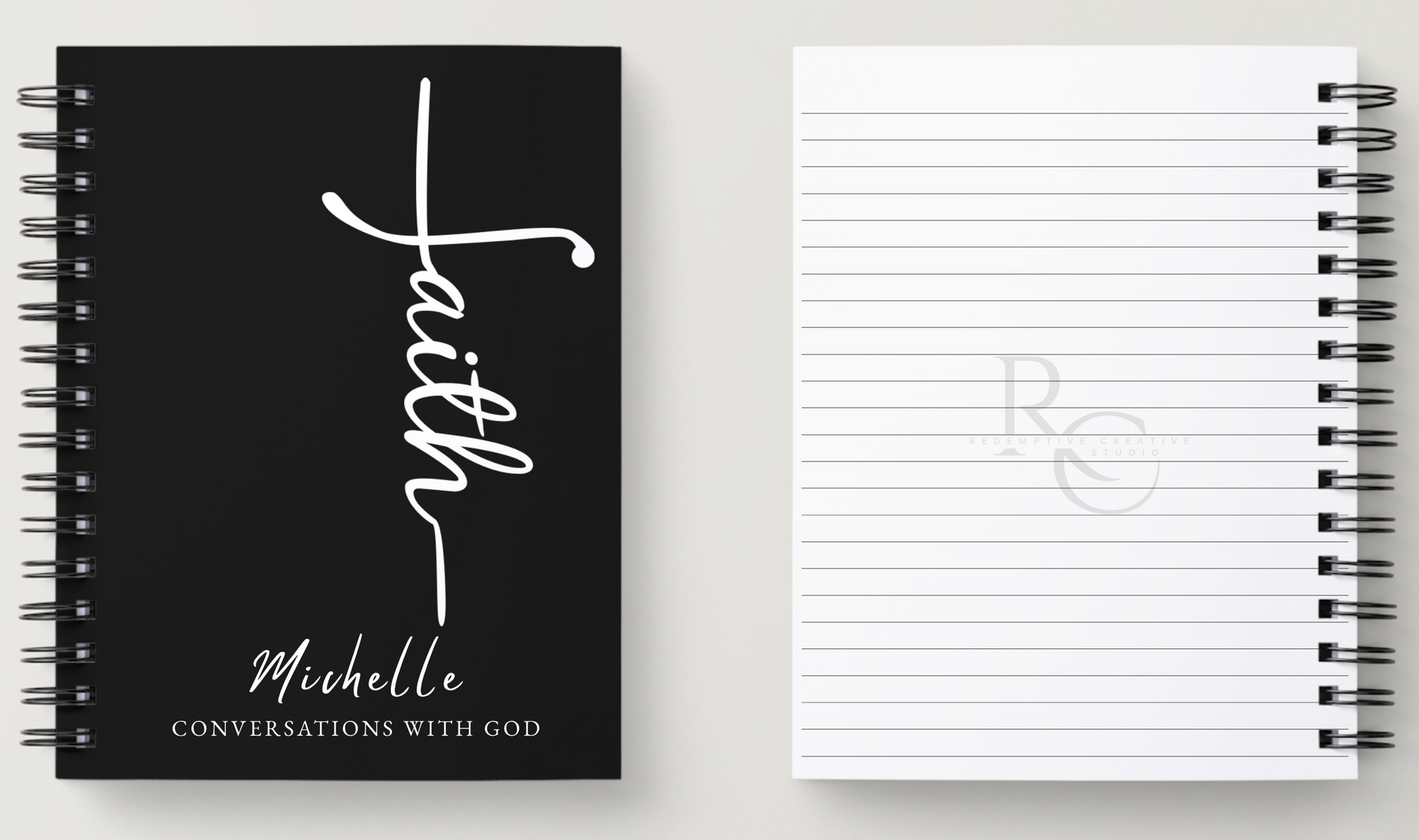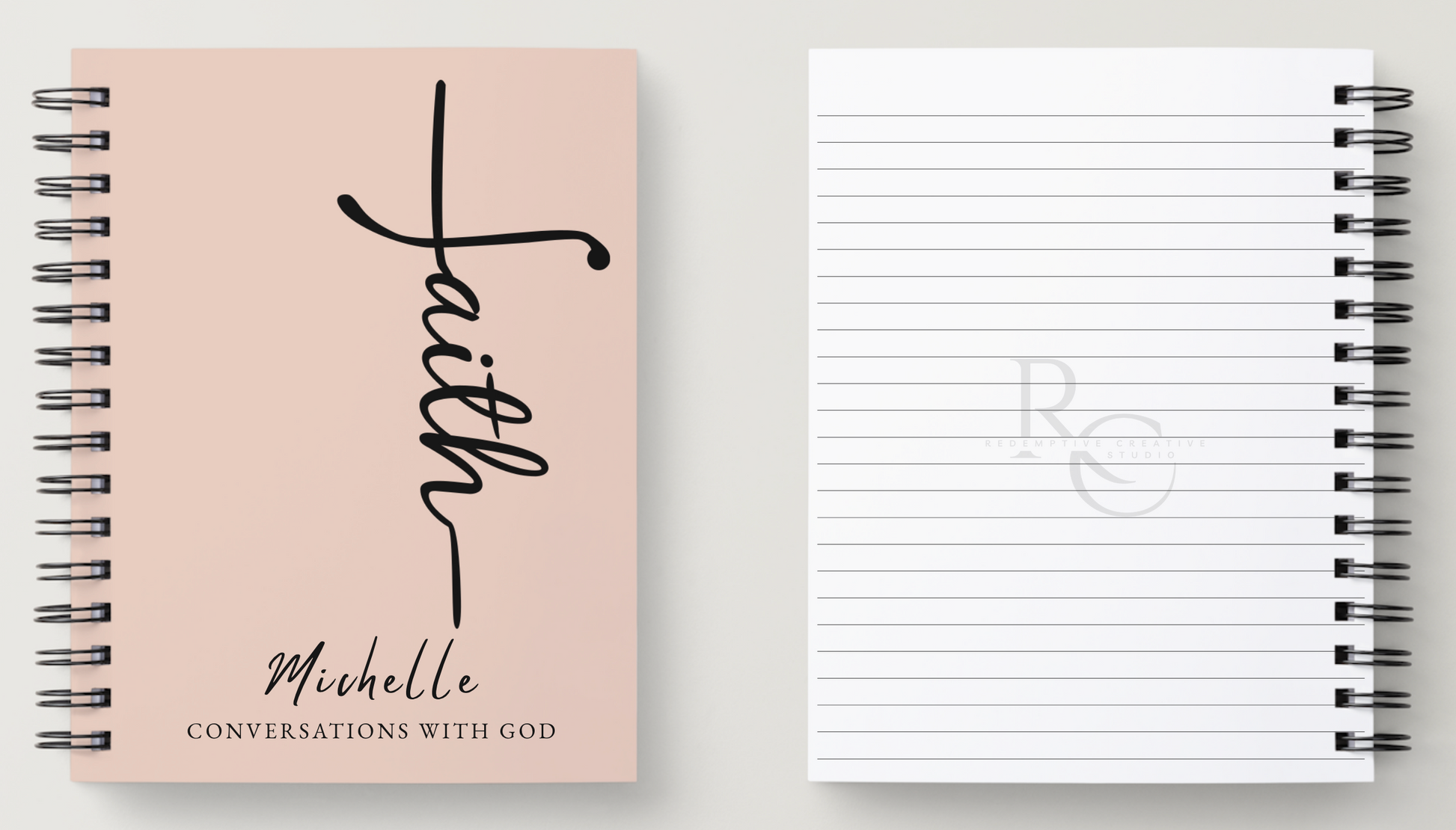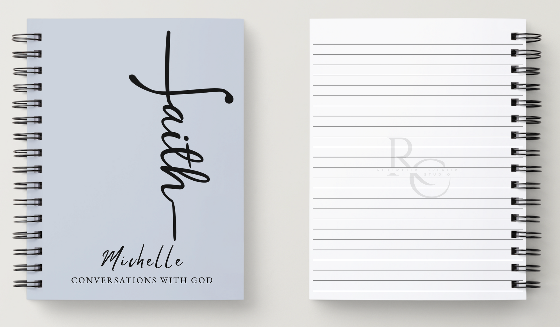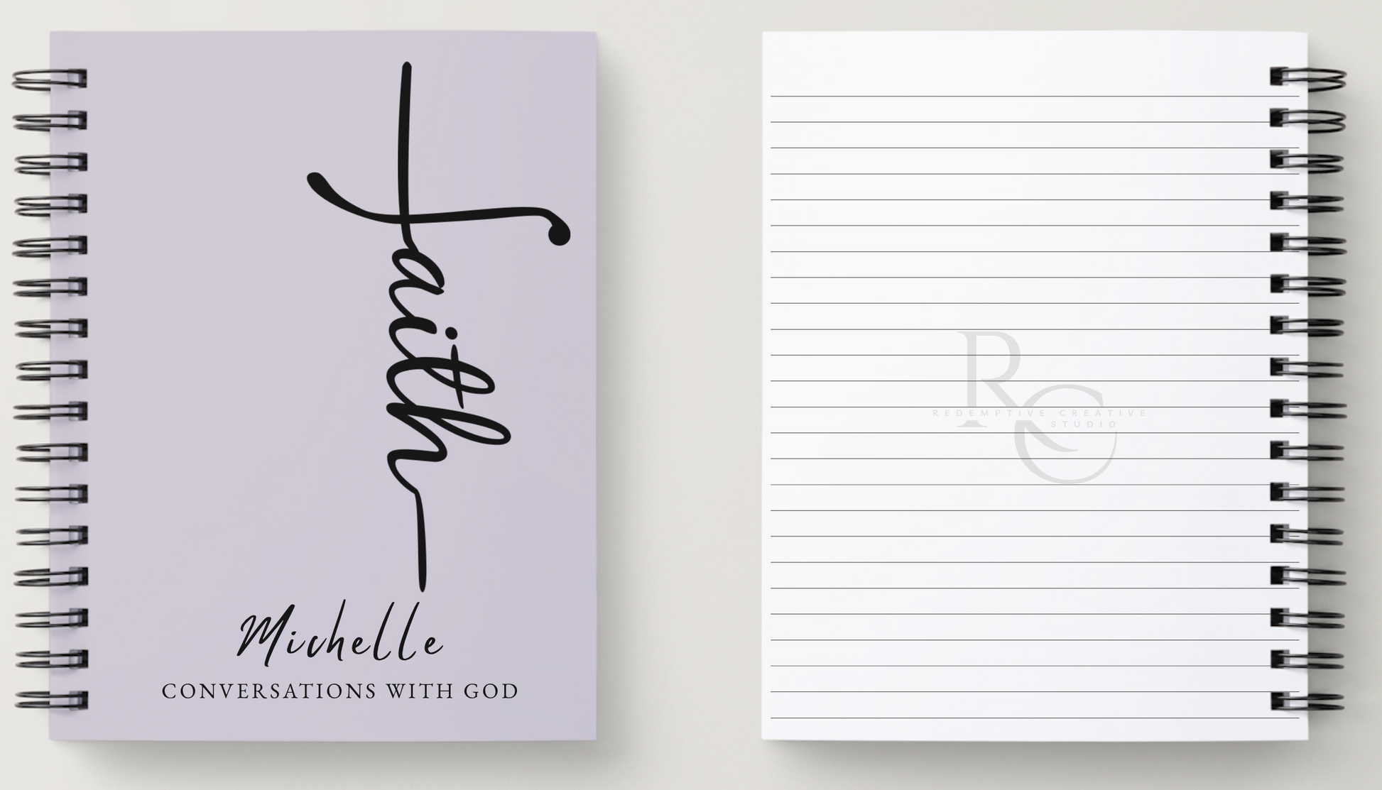 A faith-filled A5 spiral bound notebook created for prayer, reflection, and quiet moments with God. Featuring a minimalist “Faith” cross design and premium lined pages, it’s a timeless space to write, reflect, and grow.